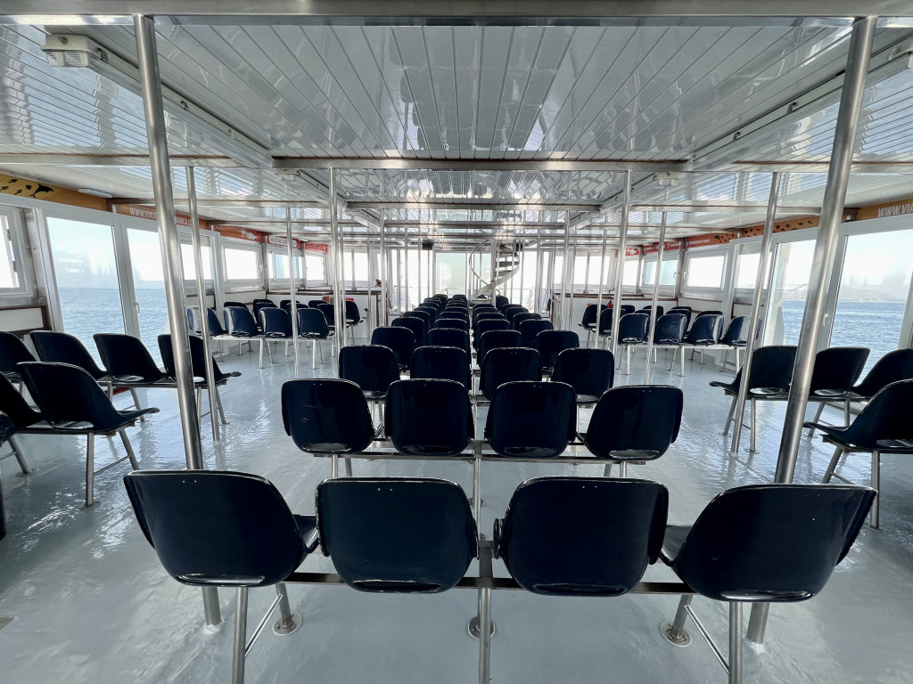 La terraza superior tiene capacidad para 126 pasajeros sentados. Aunque debido a las vistas que ofrece muchos prefieren ir en la parte de arriba de pie. Es una zona perfecta para disfrutar de la brisa del mar y de la paz que se respira al navegar.